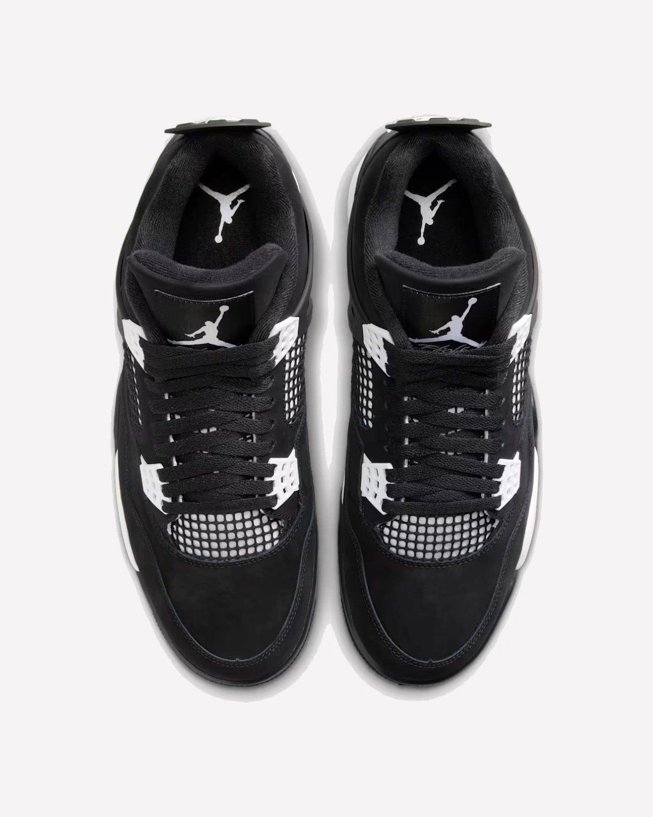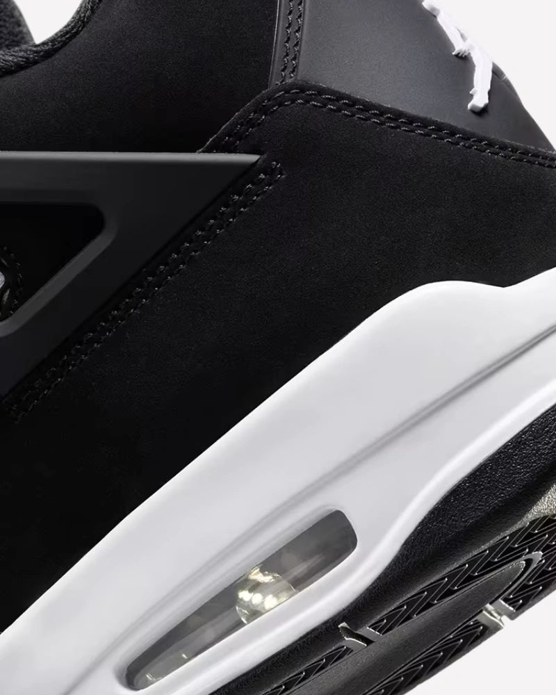 El diseño de las Air Jordan 4 White Thunder se presenta en una paleta de colores minimalista pero impactante. Predominantemente en negro, estas zapatillas están elaboradas con materiales de alta calidad, ofreciendo una combinación perfecta entre nobuck y cuero que asegura durabilidad y un acabado premium. Los detalles en blanco, que se encuentran en los ojales y la entresuela, crean un contraste visual llamativo que resalta la estructura clásica de las Jordan 4.