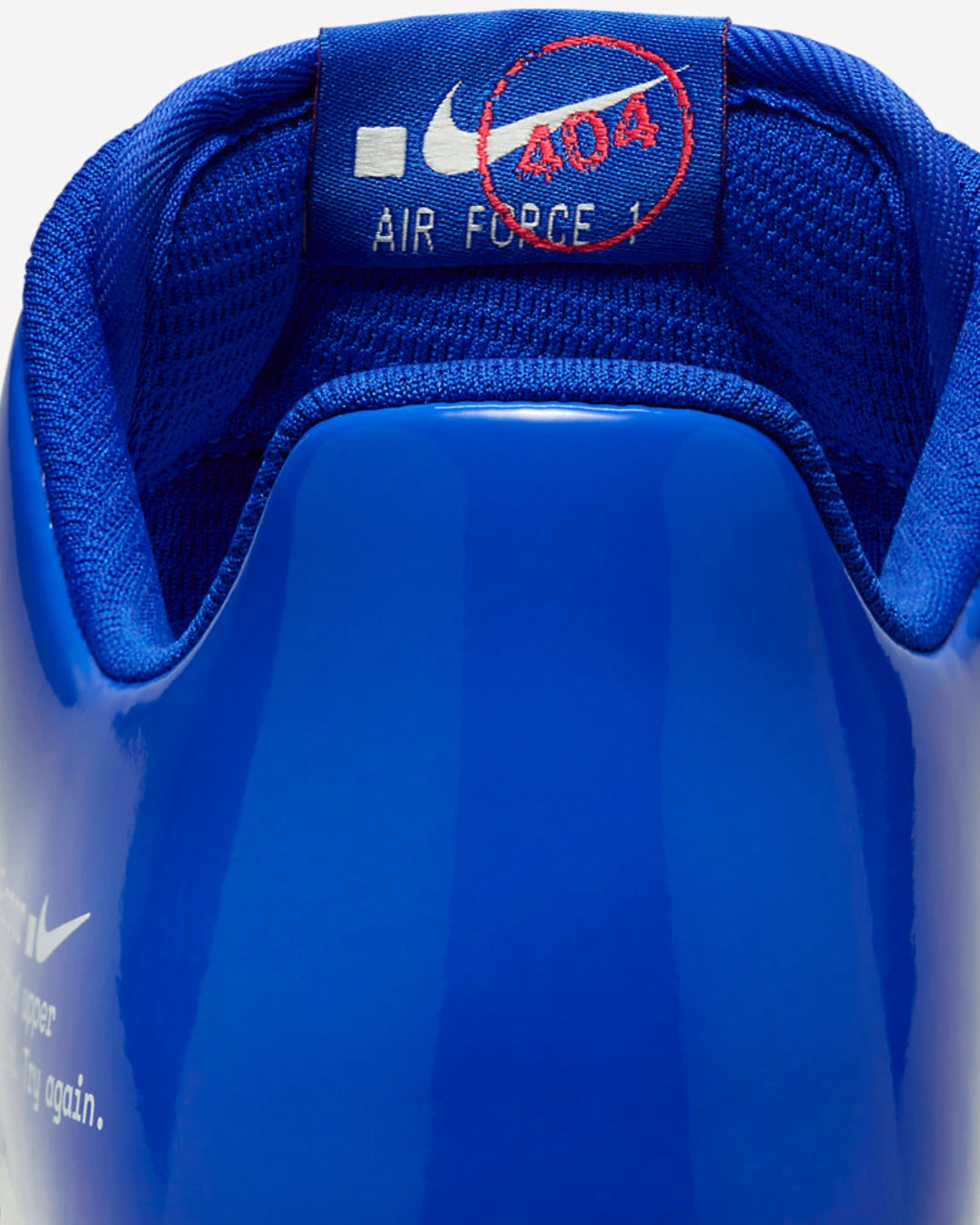 Las Nike Air Force 1 Low .SWOOSH 404 Error presentan una propuesta atrevida e innovadora dentro del universo sneaker, fusionando el estilo clásico de las Air Force 1 con un diseño digitalizado y minimalista. Este modelo de edición especial destaca inmediatamente por su color azul vibrante, combinado con un mensaje que hace referencia al famoso código de error "404 Error", dando un toque contemporáneo y tecnológico a un calzado icónico. La mezcla de cultura pop y humor irónico se refleja en el mensaje impreso en el lateral: "The requested upper was not found. Try again.", añadiendo un aire exclusivo y provocativo.