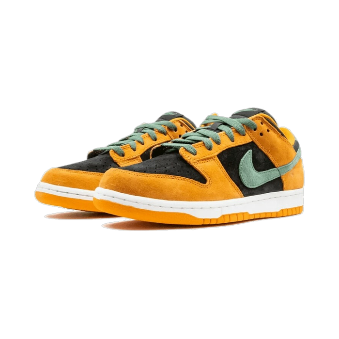 Con una construcción íntegramente en gamuza, las Dunk Low Ceramic destacan por su vibrante combinación de naranja cerámico, negro carbón y verde oliva claro. Las superposiciones naranjas aportan calidez y energía al diseño, mientras que la base negra proporciona profundidad y contraste visual. El Swoosh y los cordones en verde pastel añaden un toque inesperado que complementa perfectamente la paleta general, logrando un balance estético que resulta atrevido pero armonioso. La mediasuela blanca y la suela exterior naranja cierran el conjunto con un aire clásico y muy reconocible dentro del ADN Dunk.
