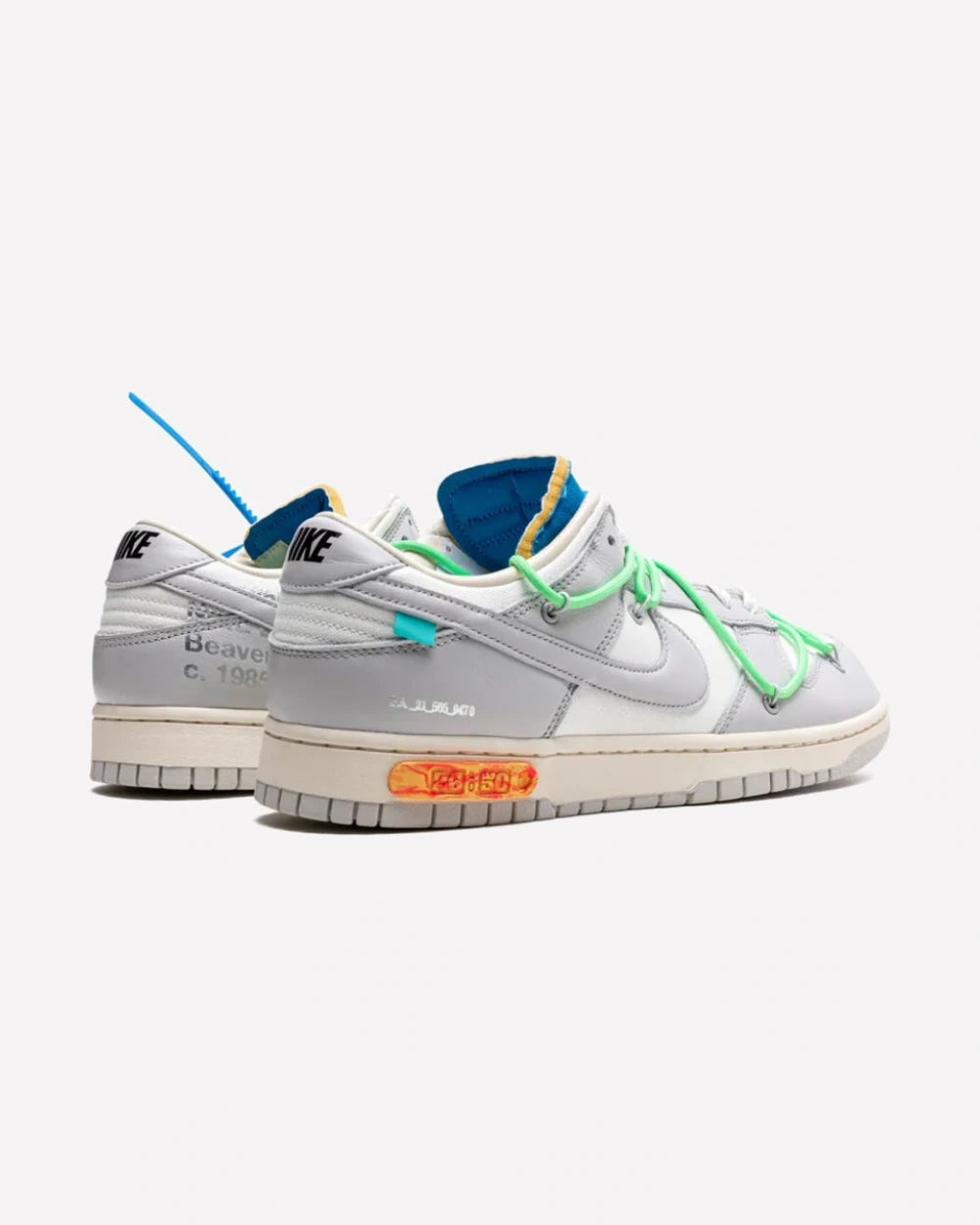 Un elemento distintivo de las Nike Dunk Low Off-White Lote 26 es la inscripción "26 de 50" que adorna la entresuela. Esta marca no solo agrega un toque exclusivo al diseño, sino que también indica la posición única de este par dentro de la serie numerada del lote, subrayando su rareza y singularidad.