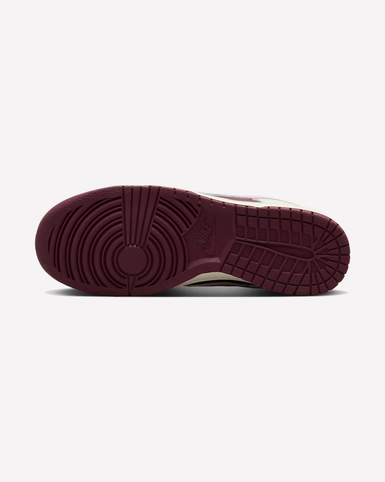 La suela de color burdeos y la plantilla de malla completan el diseño, brindando comodidad y durabilidad. Atados con agujetas del mismo tono, estos Dunk Low no solo destacan por su diseño atractivo, sino también por su atención al detalle y artesanía excepcional.