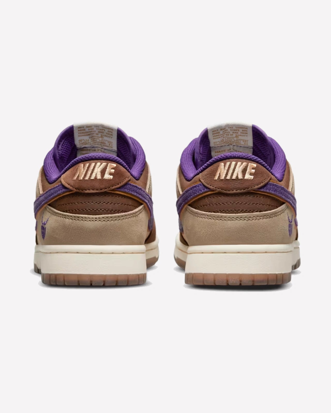 La base de cuero agrietado beige crea una textura única que evoca la transición de las estaciones, mientras que las superposiciones en cuero claro y marrón oscuro añaden una profundidad visual y una paleta de colores naturalmente armoniosa. El Silbido lateral, confeccionado en ante púrpura, no solo agrega un toque de lujo, sino que también destaca gracias al forro de tela y la impresionante ilustración del demonio Tsuno Daishi bordado en el talón. Esta representación artística rinde homenaje a la mitología japonesa, añadiendo un elemento narrativo a estas zapatillas únicas.